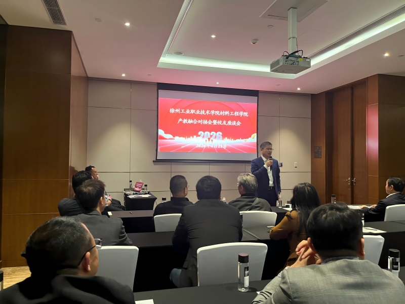 为深化产教融合、凝聚校友力量、拓宽校地校企合作渠道,4月21日下午,材料工程学院2026年产教融合对接会暨校友座谈会在上海嘉定喜来登酒店顺利举行。会议由材料工程学院院长柳峰主持,学校副校长曾凡远教授出席并致辞,校继续教育学院、材料工程学院师生代表、徐州淮海国际港务区、珠山数字经济产业园代表、合作企业及优秀校友代表参会交流。